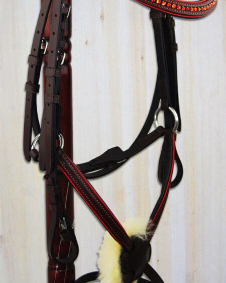 - Measurement D (Depth of padded part, including padding) - This measurement will guide you as to how the depth of the noseband will look on your horse.