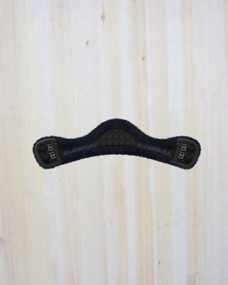 The black short sheepskin cotton girth is lined with genuine Mattes lambskin, selected for its density, softness, and breathability. Lambskin helps regulate heat, reduces friction, and provides natural cushioning, making it particularly well suited to sensitive horses or those prone to girth rubs.